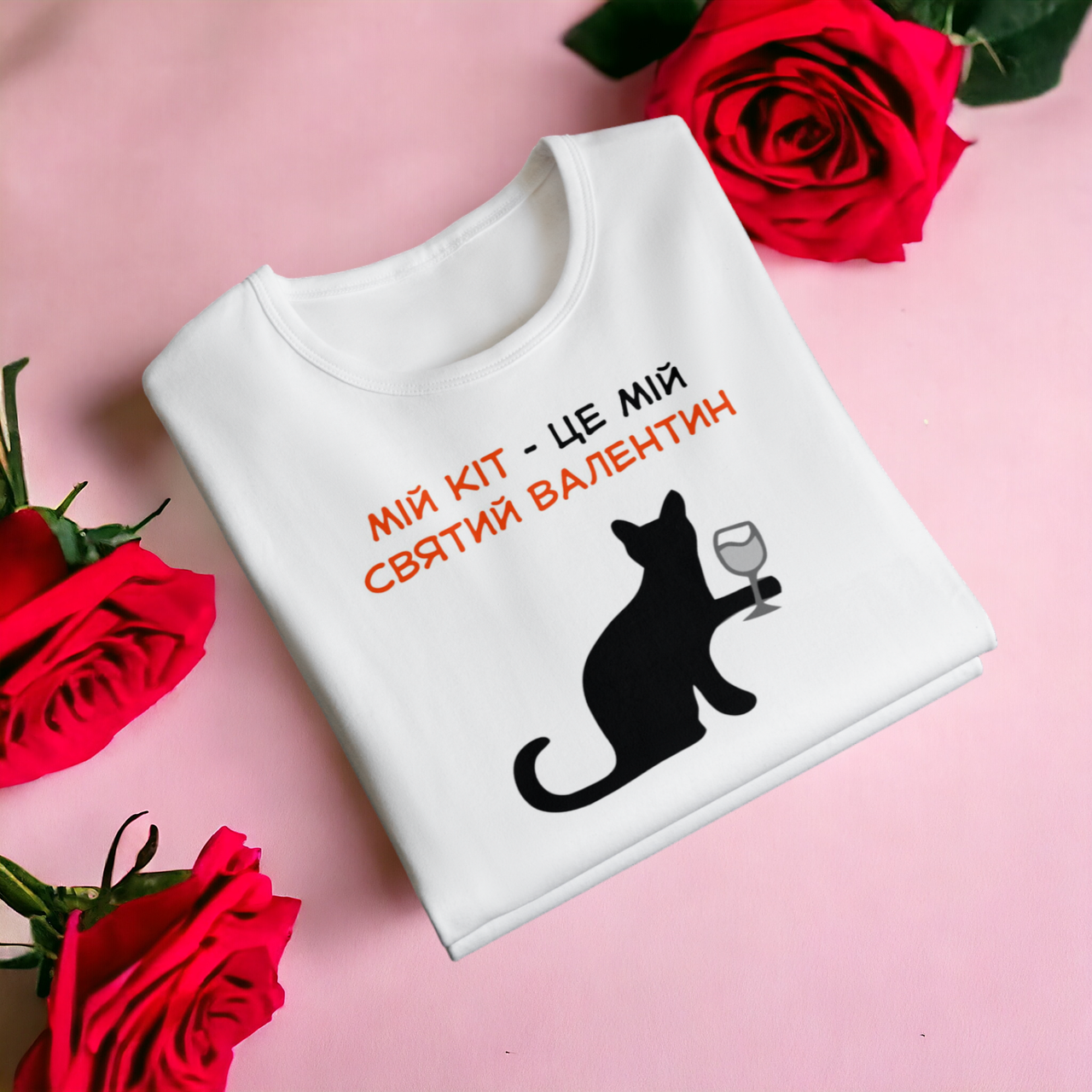 "Кіт - мій Валентин" футболка для хлопця, біла